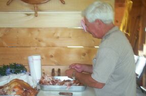 Pat Ruddy carving up his famous Garbage Can turkeys.